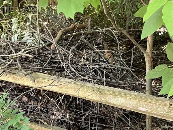 We see small mammals at Wildergarden on a daily basis. They depend on our plants, especially trees, for habitat. They drink from our water pans. Squirrels nest in trees. Chipmunks nest in underground burrows. We believe that these two species have planted a portion of our volunteer trees. Their digging is also known to improve soil aeration and drainage.