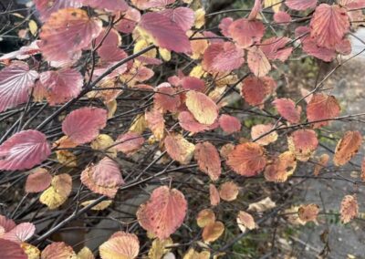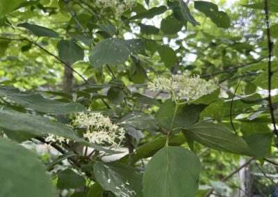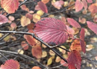 Shrubs are perennial woody vegetation with many of the same characteristics as trees. They are distinguished by having multiple stems, and are usually not more than 15 feet tall. Our shrubs are good sources of flowers and berries for wildlife. Our planted native shrubs that have thrived include arrowwood viburnum, American cranberry, ninebark, blackhaw viburnum, grey dogwood and silky dogwood.